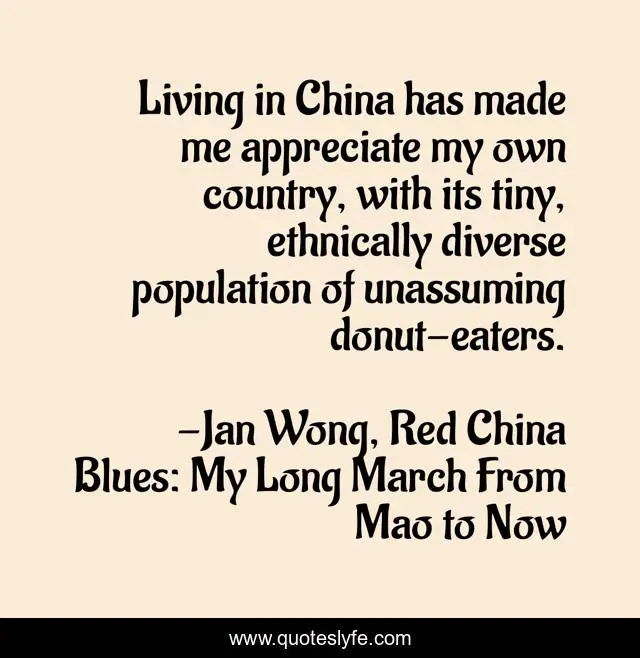 "Jan Wong, Red China Blues: My Long March From Mao to Now Quotes." Quoteslyfe.com, 2025. Sat. 06 Dec. 2025. <https://www.quoteslyfe.com/quote/Living-in-China-has-made-me-appreciate-136950>.