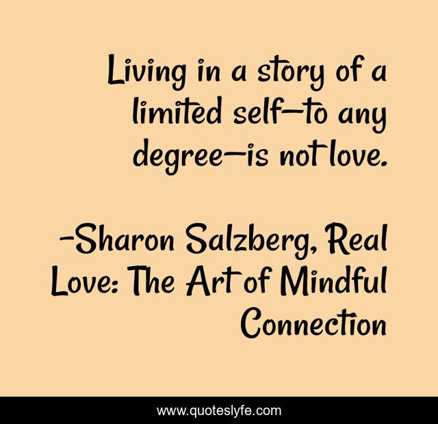 This page presents the quote "Living in a story of a limited self—to any degree—is not love.". Author of this quote is Sharon Salzberg, Real Love: The Art of Mindful Connection. This quote is about relationships, love, storytelling, communication, buddhism, meditation, affection,.