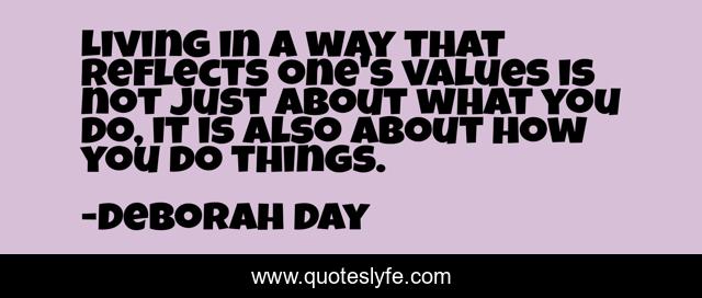 This page presents the quote "Living in a way that reflects one's values is not just about what you do, it is also about how you do things.". Author of this quote is Deborah Day. This quote is about purpose-of-life, values, reflection,.