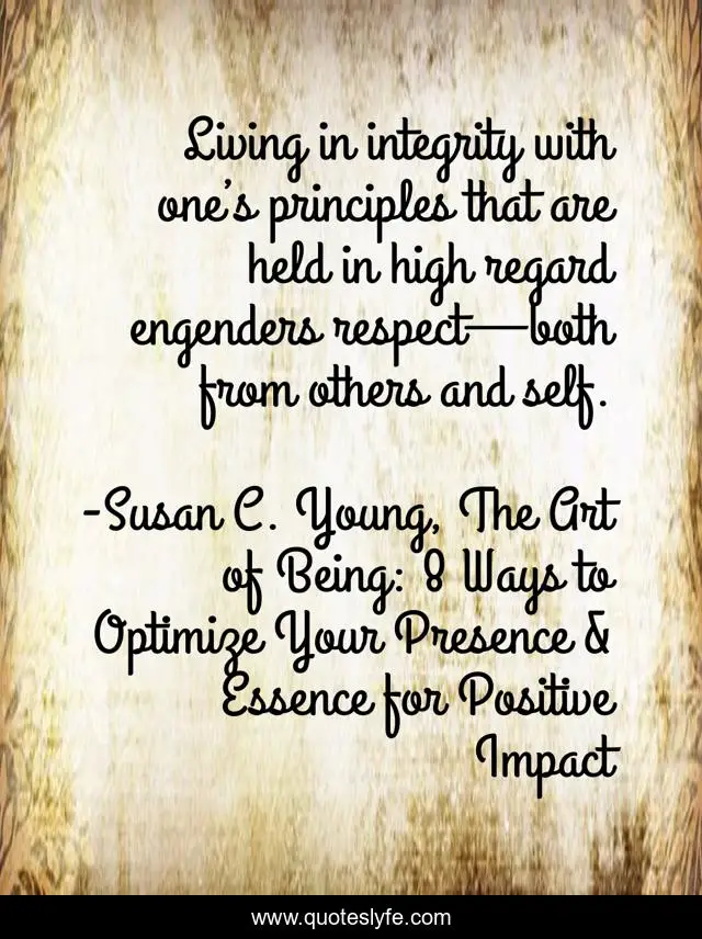 "Susan C. Young, The Art of Being: 8 Ways to Optimize Your Presence & Essence for Positive Impact Quotes." Quoteslyfe.com, 2025. Fri. 05 Dec. 2025. <https://www.quoteslyfe.com/quote/Living-in-integrity-with-one-s-principles-142608>.