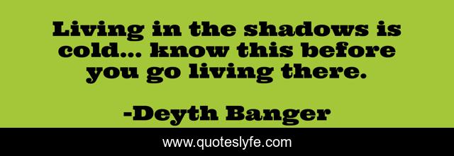 This page presents the quote "Living in the shadows is cold... know this before you go living there.". Author of this quote is Deyth Banger. This quote is about shadows, cold, live, before,.