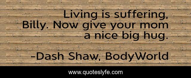 This page presents the quote "Living is suffering, Billy. Now give your mom a nice big hug.". Author of this quote is Dash Shaw, BodyWorld. This quote is about living, life, suffering, mothers,.