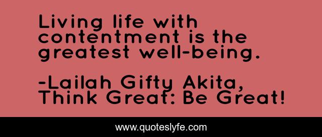 "Lailah Gifty Akita, Think Great: Be Great! Quotes." Quoteslyfe.com, 2025. Fri. 05 Dec. 2025. <https://www.quoteslyfe.com/quote/Living-life-with-contentment-is-the-greatest-97226>.