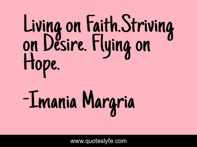 "Imania Margria Quotes." Quoteslyfe.com, 2025. Sat. 06 Dec. 2025. <https://www.quoteslyfe.com/quote/Living-on-Faith-Striving-on-Desire-Flying-47905>.