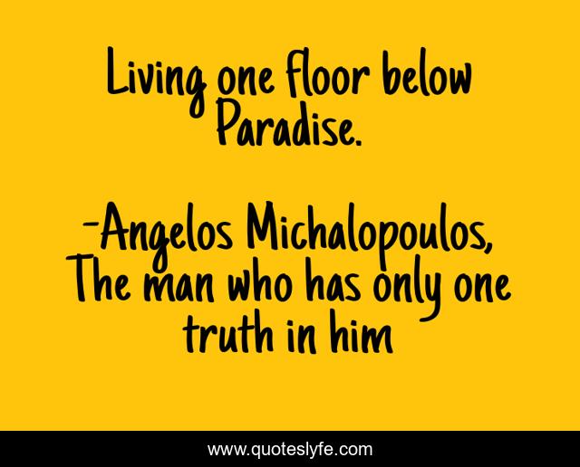 "Angelos Michalopoulos, The man who has only one truth in him Quotes." Quoteslyfe.com, 2025. Fri. 05 Dec. 2025. <https://www.quoteslyfe.com/quote/Living-one-floor-below-Paradise-106058>.