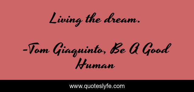 "Tom Giaquinto, Be A Good Human Quotes." Quoteslyfe.com, 2025. Mon. 08 Dec. 2025. <https://www.quoteslyfe.com/quote/Living-the-dream-16714>.