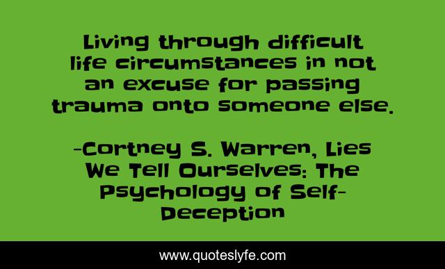 "Cortney S. Warren, Lies We Tell Ourselves: The Psychology of Self-Deception Quotes." Quoteslyfe.com, 2025. Fri. 05 Dec. 2025. <https://www.quoteslyfe.com/quote/Living-through-difficult-life-circumstances-in-not-105499>.