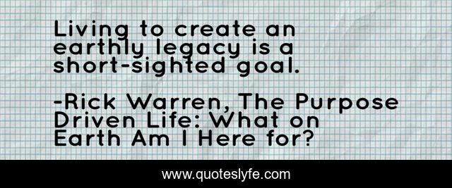 This page presents the quote "Living to create an earthly legacy is a short-sighted goal.". Author of this quote is Rick Warren, The Purpose Driven Life: What on Earth Am I Here for?. .