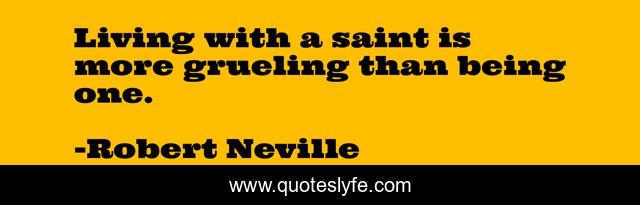 This page presents the quote "Living with a saint is more grueling than being one.". Author of this quote is Robert Neville. This quote is about love, marriage, affection,.