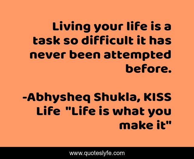 "Abhysheq Shukla, KISS Life "Life is what you make it" Quotes." Quoteslyfe.com, 2025. Fri. 05 Dec. 2025. <https://www.quoteslyfe.com/quote/Living-your-life-is-a-task-so-81685>.