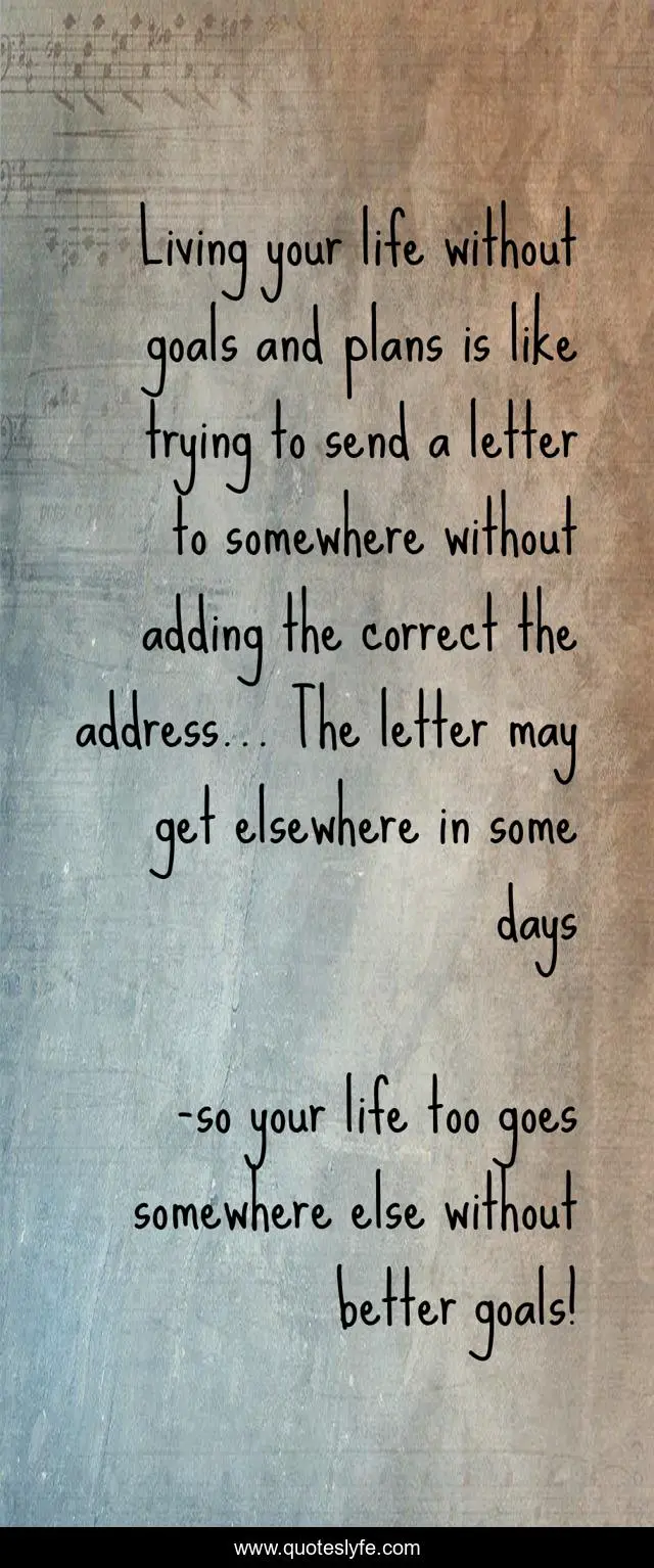 Living your life without goals and plans is like trying to send a letter to somewhere without adding the correct the address... The letter may get elsewhere in some days