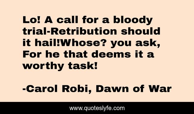 "Carol Robi, Dawn of War Quotes." Quoteslyfe.com, 2025. Sat. 06 Dec. 2025. <https://www.quoteslyfe.com/quote/Lo-A-call-for-a-bloody-trial-101038>.