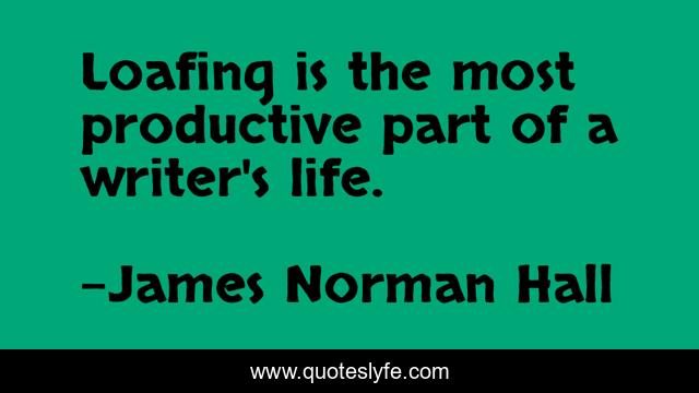 This page presents the quote "Loafing is the most productive part of a writer's life.". Author of this quote is James Norman Hall. .