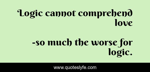 "so much the worse for logic. Quotes." Quoteslyfe.com, 2025. Sat. 06 Dec. 2025. <https://www.quoteslyfe.com/quote/Logic-cannot-comprehend-love-25951>.