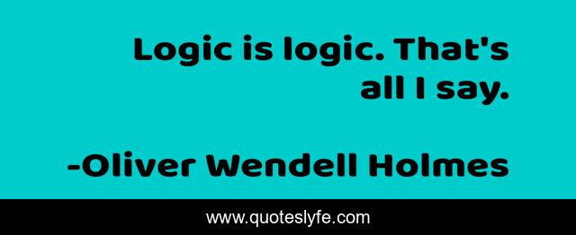 "Oliver Wendell Holmes Quotes." Quoteslyfe.com, 2025. Sat. 06 Dec. 2025. <https://www.quoteslyfe.com/quote/Logic-is-logic-That-s-all-I-270043>.