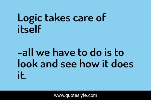 "all we have to do is to look and see how it does it. Quotes." Quoteslyfe.com, 2025. Sun. 07 Dec. 2025. <https://www.quoteslyfe.com/quote/Logic-takes-care-of-itself-228865>.