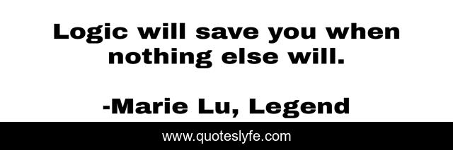 "Marie Lu, Legend Quotes." Quoteslyfe.com, 2025. Sat. 06 Dec. 2025. <https://www.quoteslyfe.com/quote/Logic-will-save-you-when-nothing-else-228906>.