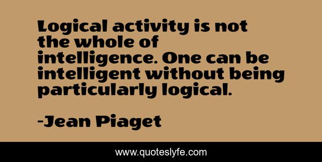 This page presents the quote "Logical activity is not the whole of intelligence. One can be intelligent without being particularly logical.". Author of this quote is Jean Piaget. This quote is about intelligent, activity,.