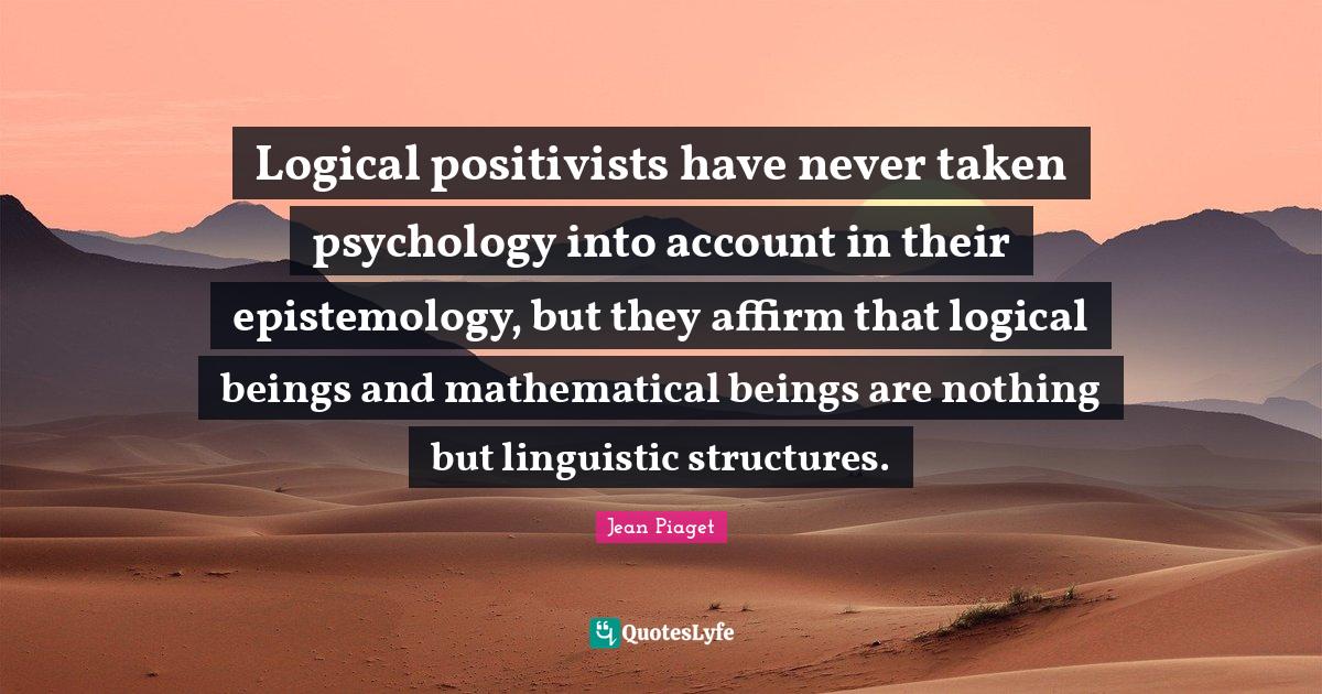 This page presents the quote "Logical positivists have never taken psychology into account in their epistemology, but they affirm that logical beings and mathematical beings are nothing but linguistic structures.". Author of this quote is Jean Piaget. This quote is about epistemology, taken, psychology, mathematical, logical,.
