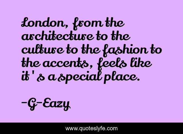 This page presents the quote "London, from the architecture to the culture to the fashion to the accents, feels like it's a special place.". Author of this quote is G-Eazy. This quote is about culture, fashion, london,.