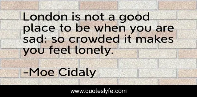 This page presents the quote "London is not a good place to be when you are sad: so crowded it makes you feel lonely.". Author of this quote is Moe Cidaly. This quote is about crowded, humor, lonely, london, sad,.
