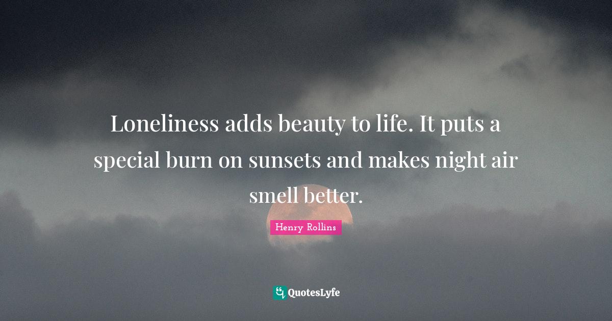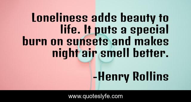 This page presents the quote "Loneliness adds beauty to life. It puts a special burn on sunsets and makes night air smell better.". Author of this quote is Henry Rollins. This quote is about loneliness, henry-rollins,.
