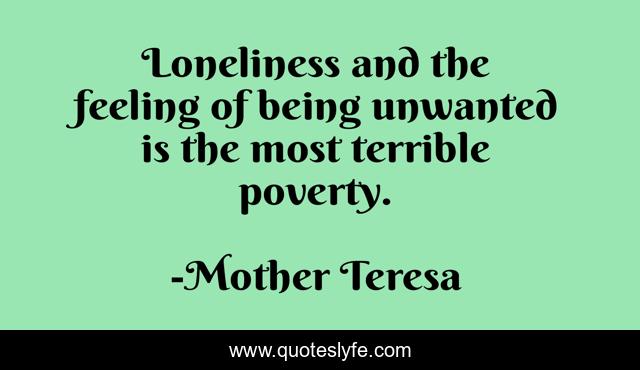 "Mother Teresa Quotes." Quoteslyfe.com, 2025. Fri. 05 Dec. 2025. <https://www.quoteslyfe.com/quote/Loneliness-and-the-feeling-of-being-unwanted-4663>.