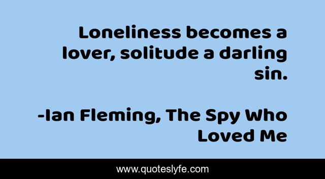 This page presents the quote "Loneliness becomes a lover, solitude a darling sin.". Author of this quote is Ian Fleming, The Spy Who Loved Me. This quote is about ian-fleming, james-bond, loneliness, solitude, the-spy-who-loved-me,.