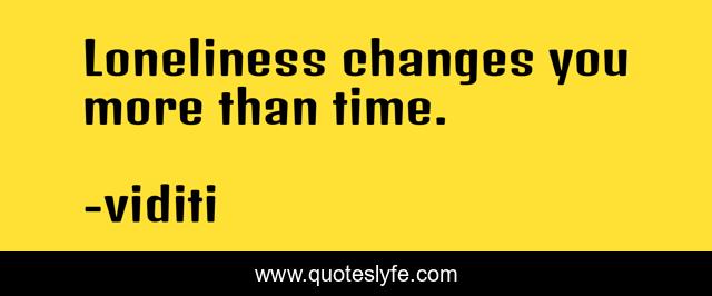 This page presents the quote "Loneliness changes you more than time.". Author of this quote is viditi. This quote is about human-nature, challenge-and-attitude, inspirational, life-lessons, enthusiasm,.