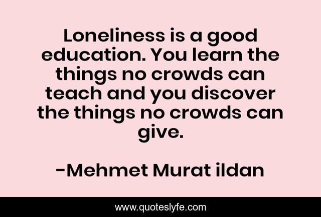 This page presents the quote "Loneliness is a good education. You learn the things no crowds can teach and you discover the things no crowds can give.". Author of this quote is Mehmet Murat ildan. .
