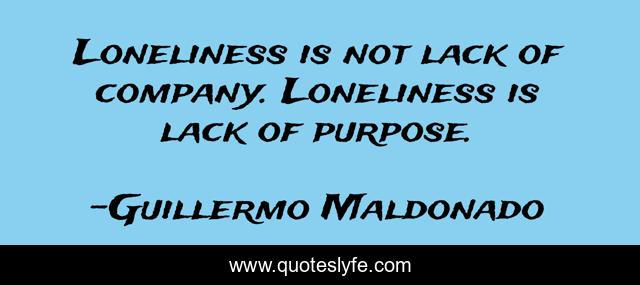 This page presents the quote "Loneliness is not lack of company. Loneliness is lack of purpose.". Author of this quote is Guillermo Maldonado. This quote is about lack-of-purpose, loneliness,.