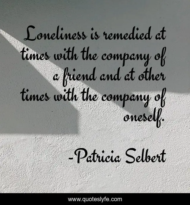 This page presents the quote "Loneliness is remedied at times with the company of a friend and at other times with the company of oneself.". Author of this quote is Patricia Selbert. .