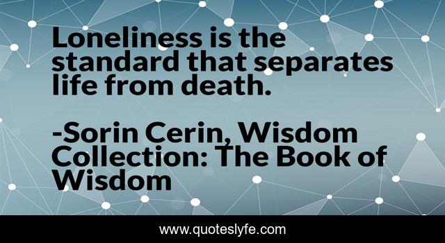 This page presents the quote "Loneliness is the standard that separates life from death.". Author of this quote is Sorin Cerin, Wisdom Collection: The Book of Wisdom. This quote is about life, death, loneliness,.