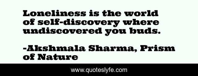 This page presents the quote "Loneliness is the world of self-discovery where undiscovered you buds.". Author of this quote is Akshmala Sharma, Prism of Nature. .