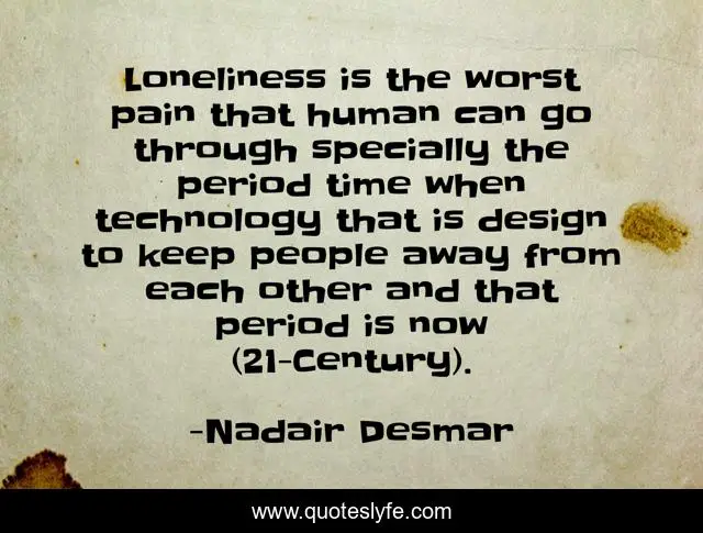 This page presents the quote "Loneliness is the worst pain that human can go through specially the period time when technology that is design to keep people away from each other and that period is now (21-Century).". Author of this quote is Nadair Desmar. .