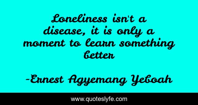 This page presents the quote "Loneliness isn't a disease, it is only a moment to learn something better". Author of this quote is Ernest Agyemang Yeboah. This quote is about attitude-is-everything, loneliness, solitude, feeling-lonely, choices,.
