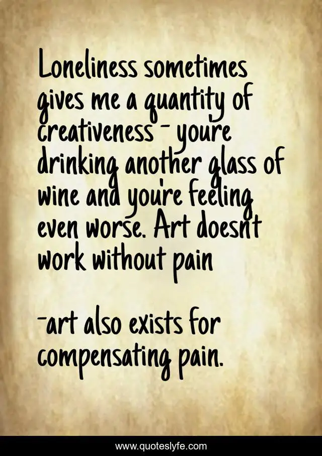 This page presents the quote "Loneliness sometimes gives me a quantity of creativeness - you're drinking another glass of wine and you're feeling even worse. Art doesn't work without pain". Author of this quote is art also exists for compensating pain.. .