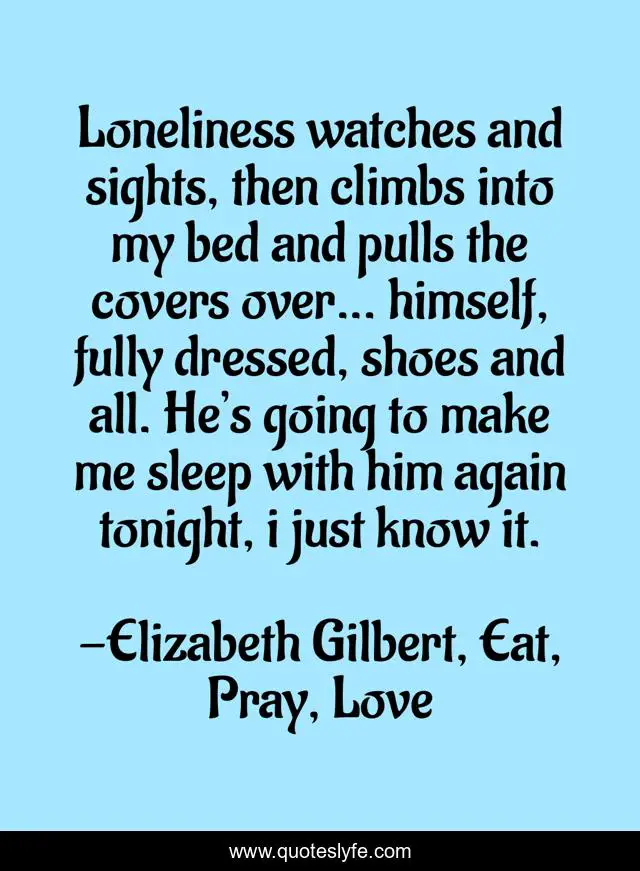 "Elizabeth Gilbert, Eat, Pray, Love Quotes." Quoteslyfe.com, 2025. Fri. 05 Dec. 2025. <https://www.quoteslyfe.com/quote/Loneliness-watches-and-sights-then-climbs-into-138757>.