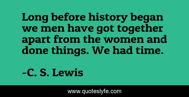 This page presents the quote "Long before history began we men have got together apart from the women and done things. We had time.". Author of this quote is C. S. Lewis. This quote is about time, together, history,.
