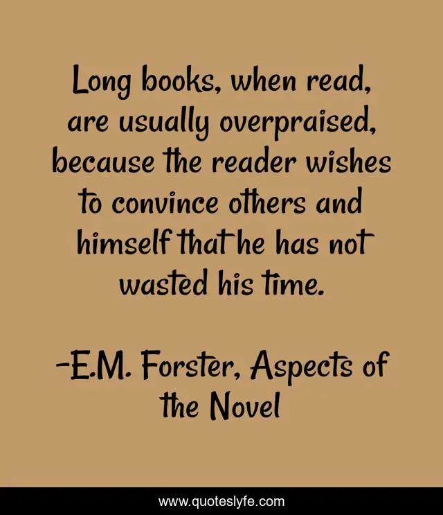 "E.M. Forster, Aspects of the Novel Quotes." Quoteslyfe.com, 2025. Sat. 06 Dec. 2025. <https://www.quoteslyfe.com/quote/Long-books-when-read-are-usually-overpraised-66501>.