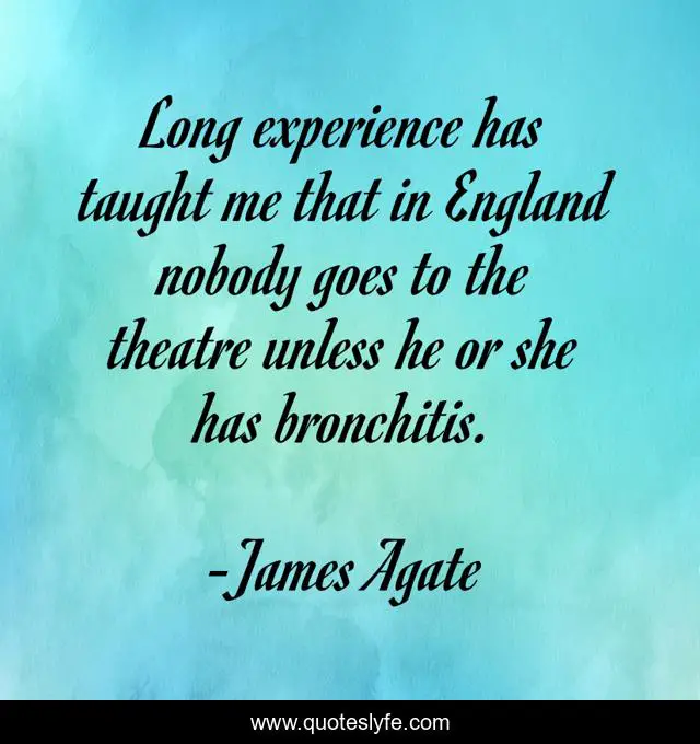 This page presents the quote "Long experience has taught me that in England nobody goes to the theatre unless he or she has bronchitis.". Author of this quote is James Agate. This quote is about acting, theatre,.