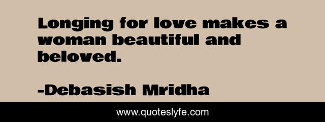 "Debasish Mridha Quotes." Quoteslyfe.com, 2025. Sun. 07 Dec. 2025. <https://www.quoteslyfe.com/quote/Longing-for-love-makes-a-woman-beautiful-75055>.