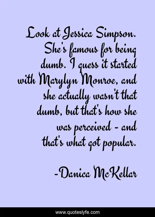 This page presents the quote "Look at Jessica Simpson. She's famous for being dumb. I guess it started with Marylyn Monroe, and she actually wasn't that dumb, but that's how she was perceived - and that's what got popular.". Author of this quote is Danica McKellar. This quote is about dumb, look, she,.