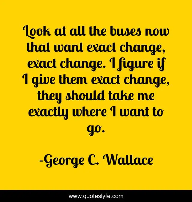 This page presents the quote "Look at all the buses now that want exact change, exact change. I figure if I give them exact change, they should take me exactly where I want to go.". Author of this quote is George C. Wallace. This quote is about me, look,.