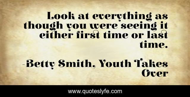 This page presents the quote "Look at everything as though you were seeing it either first time or last time.". Author of this quote is Betty Smith, Youth Takes Over. This quote is about life, perspective, life-lessons, time,.