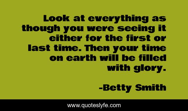 This page presents the quote "Look at everything as though you were seeing it either for the first or last time. Then your time on earth will be filled with glory.". Author of this quote is Betty Smith. .