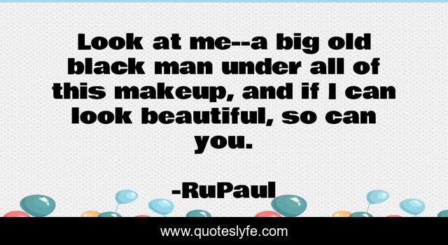 This page presents the quote "Look at me--a big old black man under all of this makeup, and if I can look beautiful, so can you.". Author of this quote is RuPaul. .