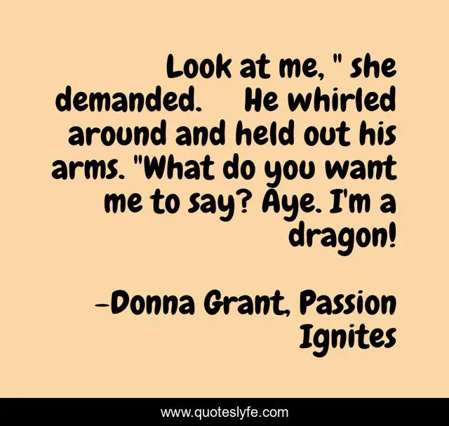 "Donna Grant, Passion Ignites Quotes." Quoteslyfe.com, 2025. Mon. 08 Dec. 2025. <https://www.quoteslyfe.com/quote/Look-at-me-she-demanded-He-whirled-132088>.