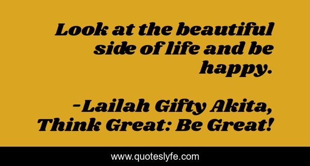"Lailah Gifty Akita, Think Great: Be Great! Quotes." Quoteslyfe.com, 2025. Fri. 05 Dec. 2025. <https://www.quoteslyfe.com/quote/Look-at-the-beautiful-side-of-life-94902>.