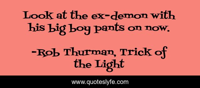 This page presents the quote "Look at the ex-demon with his big boy pants on now.". Author of this quote is Rob Thurman, Trick of the Light. This quote is about trick, light,.